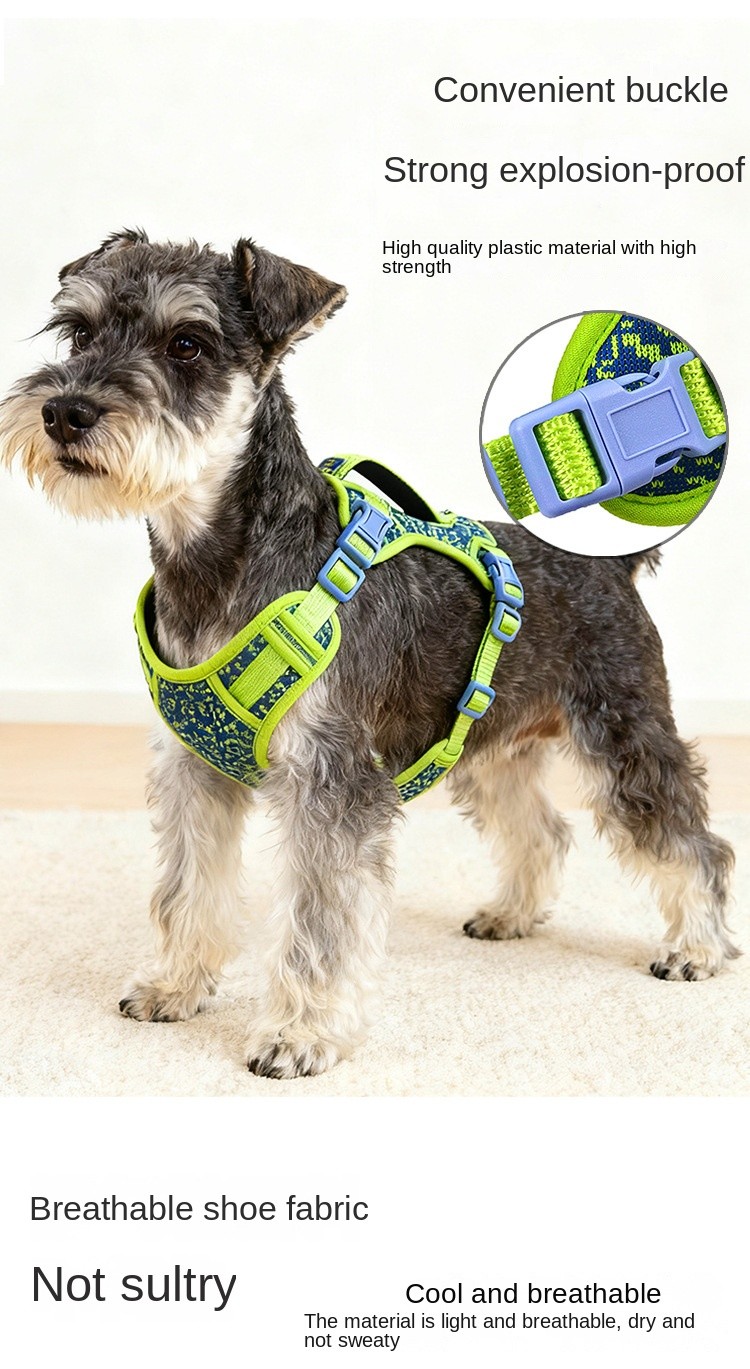 This pet gear is designed with colorful geometric patterns, with soft lining to enhance comfort, flexible buckle to ensure a perfect fit, combined with 360 ° rotation of the high-strength leash buckle and integrated poop bag hangers, providing a stylish, safe and convenient all-around solution for pets on the go, so as to escalate the experience of walking pets, and make the street turnover rate full.